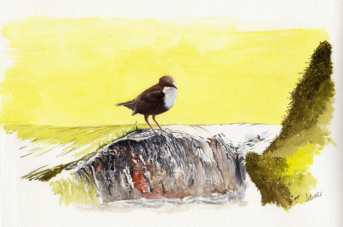 En galicia, los cauces de aguas limpias y rápidas son muy abundantes y un buen indicador de la salud de nuestros ríos y arroyos es el Mirlo acuático, Cinclus cinclus, que necesita de esta buena salud ambiental para obtener su alimento, a base de larvas de insectos acuáticos.